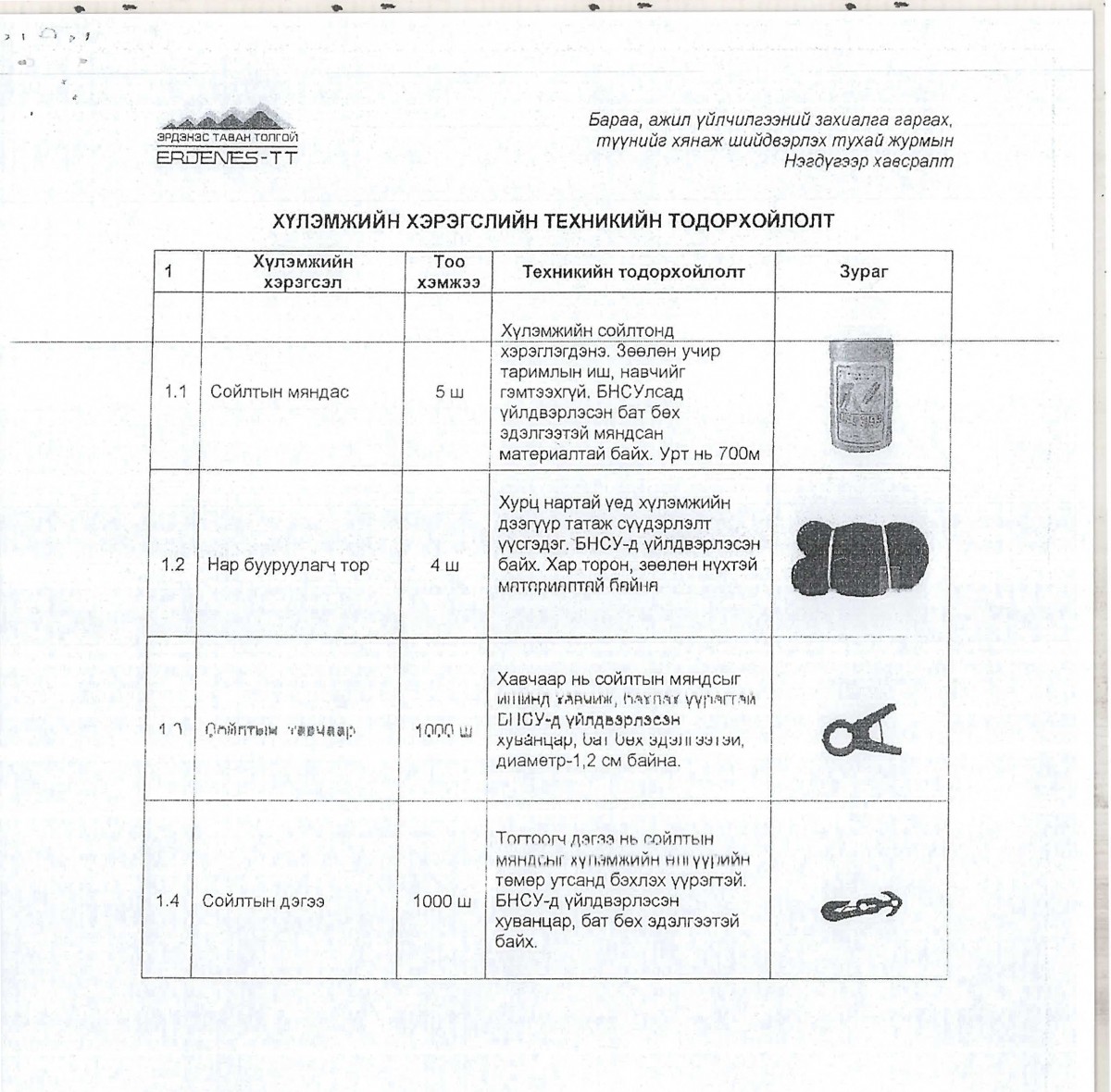 “Эрдэнэс-Тавантолгой” ХК-д Хүлэмжийн хэрэгсэл нийлүүлэх үнийн санал ирүүлэхийг урьж байна.